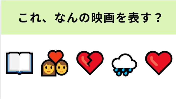 「本・ハート・雨」の絵文字から、ラブロマンスの傑作「きみに読む物語」であることがわかります。