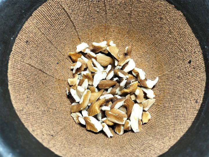 鬼ぐるみも子どもの頃によく拾って食べたものですが、普通のくるみと比べると小さくて殻が硬く、なかなか割りづらいのが特徴です。子どもの頃はくるみ割りなんて便利なものはなかったので、板の上に鬼ぐるみを手で固定して金づちで割るというなんとも原始的な方法で割っていました。苦労な割には実が少ないのですが、普通のくるみに比べて味と渋みが強く感じられます。今回何十年ぶりに食べましたが、実はこちらも東京・銀座にある長野県のアンテナショップ「銀座NAGANO」に取り扱いを事前確認したところ「殻つきはないが割ったものならある」とのことでしたので、行って買ってきました。