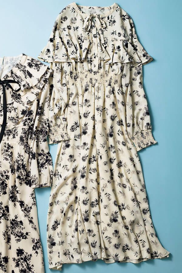 【大人の花柄ワンピース】はモノトーンで甘さを引き算!1枚で上品かつ華やかにキマります♪