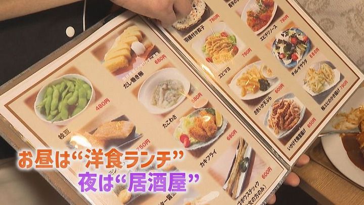 その経験を活かし、お昼は洋食ランチ、夜は居酒屋として営業しています。