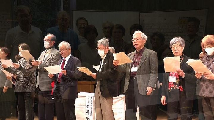 北海道江別市の公民館で胸を張って入場してきたのは平均年齢79歳、46人の卒業生たち。