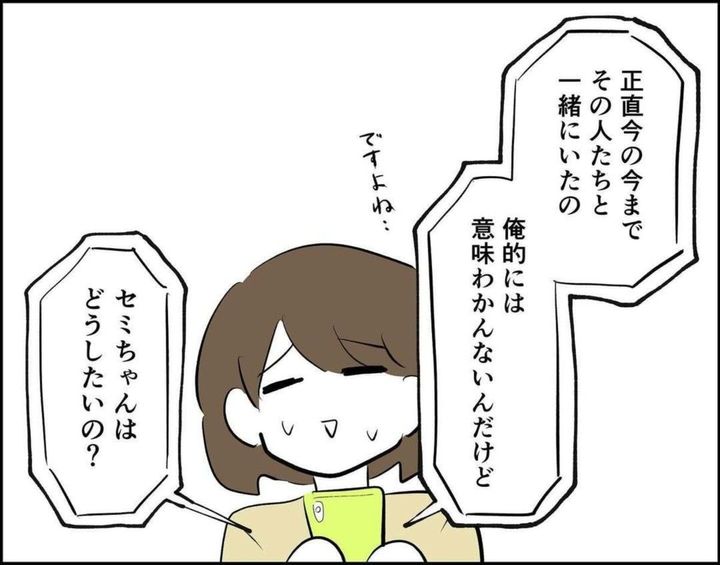 セミさんの帰省をきっかけに、半年ぶりに再会した3人。「結婚生活はどう?」と聞かれ、「そろそろ妊活をしようと考えている」と答えました。すると、セミさんが思っていた以上に、妊活の話に踏み込んできた親友。めんどうくさいと感じてしまいます。