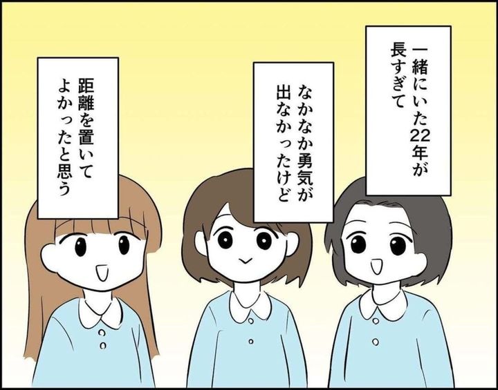 距離をおいたことで、連絡し合うことはなくなりました。さみしさを覚えつつも、セミさんは「これでよかった」と思っています。勇気を出したおかげで、今は幸せだとつづっています。