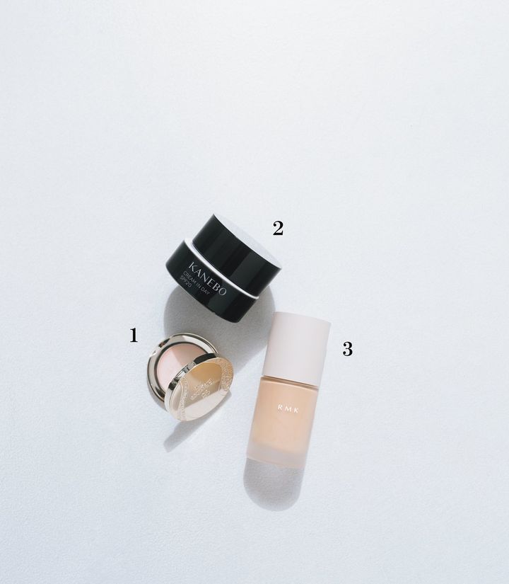 1.エレガンス スリークフェイス N PK107 ¥3,300/エレガンス コスメティックス 2.カネボウ クリーム イン デイ SPF20・PA+++ 40g ¥8,800/カネボウインターナショナルDiv. 3.RMK リクイドファンデーションフローレスカバレッジ 全9色 SPF20・PA++ 30㎖ ¥6,050