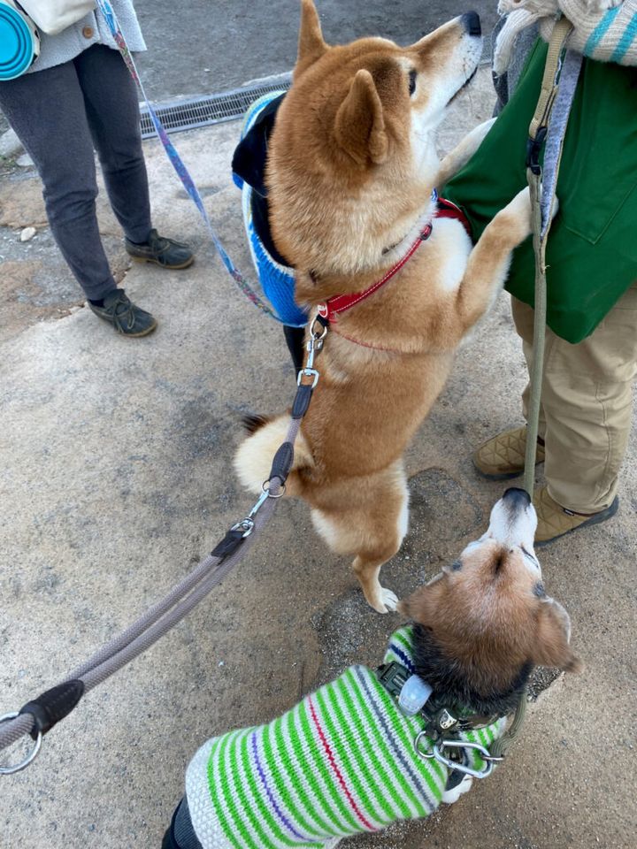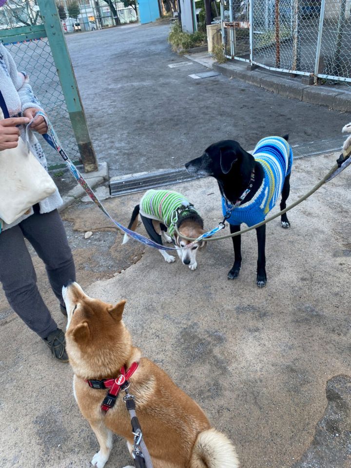こんにちは、ハルくんです。ぼくのお友だち、台湾犬のグーフィーとビーグルのグッディについては、以前にもご紹介したことがあったと思います。朝んぽで遭遇するとふたりのママたちからいつもおやつをもらえるから、ぼくはふたりとママたちが大好き。彼らはぼくよりもだいぶ早い時間からお散歩しているので、もうさんざんおやつをもらっている様子で、すごく落ち着いている。ぼくはといえば、よそのご家庭のおやつが珍しくておいしくて、いつもがっついてしまう。もっと大人にならねばと思う今日この頃のぼく。
