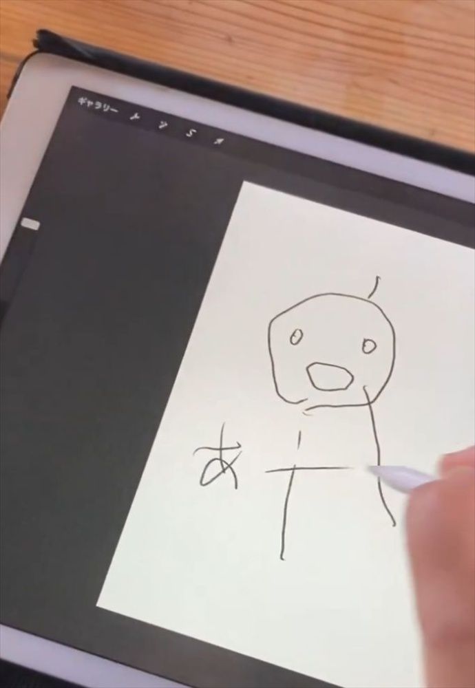 気が済んだのか、クチバシを引いたぴーちゃん。 飼い主さんは、絵を描くのを再開するのではなく「あー」という文字を書くのでした。