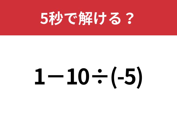 マイナスの計算には注意して!「1−10÷(-5)」5秒で解ける?