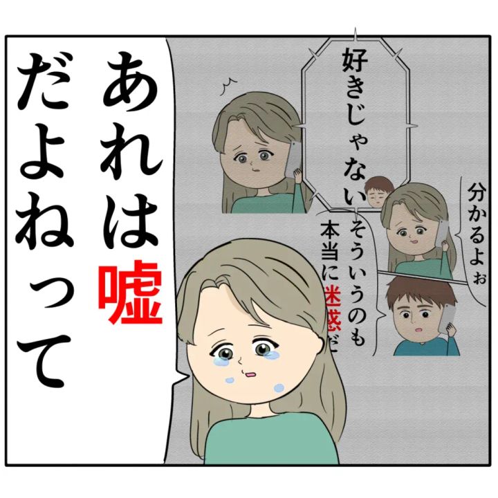 「あれは嘘だよねって」と電話でろみ緒さんに言われた拒絶の言葉を思い出して涙を流します。