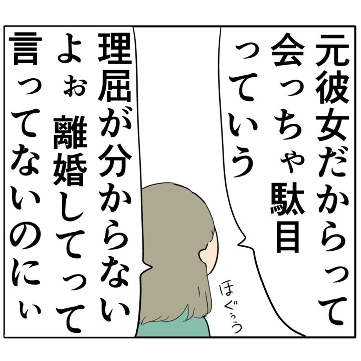 なぜ周りから元彼のろみ緒さんに連絡をしてはいけないと言われるのかが分からないジュリ実さんは「元彼女だからって会っちゃ駄目っていう理屈が分からないよぉ。離婚してって言ってないのにぃ」と涙ながらに呟きます。