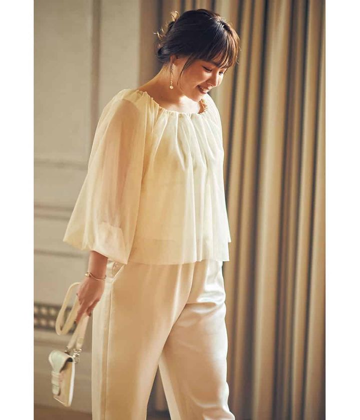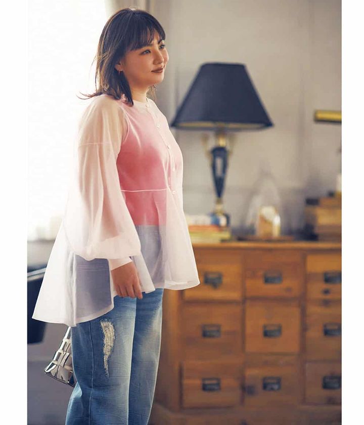 「〝透け感〟がある素材」なら、どんな色も柔らかくなるので、マシュマロさんも迫力を抑えて優しい印象に。今っぽい抜け感、オシャレ感も急上昇で、〝また会いたくなる存在感〟を作れるんです。