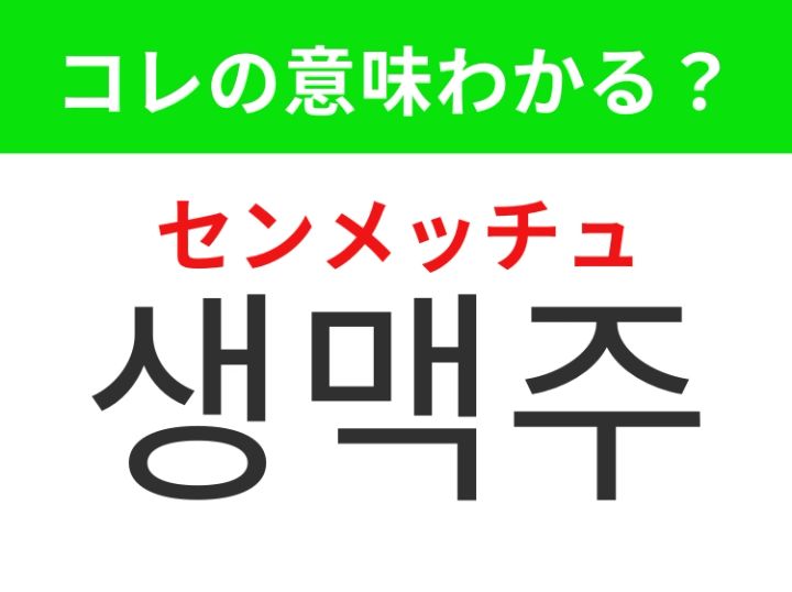 「생맥주(センメッチュ)」は、韓国語で「生ビール」のこと。韓国では、「치맥(チメク)」と呼ばれる「チキンとビール」の組み合わせが大人気で、フライドチキン専門店では必ずと言っていいほど「생맥주(センメッチュ)」がセットで提供されます。またソウルの弘大(ホンデ)や江南(カンナム)エリアでは、クラフトビール専門店が増えていて、オリジナルの「생맥주(センメッチュ)」を楽しむことができますよ♪