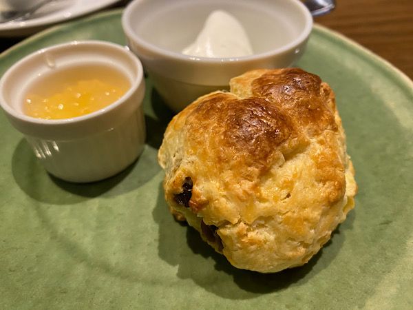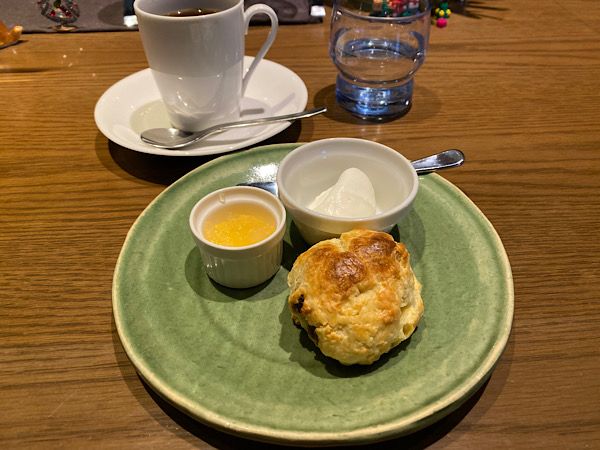 デザートはケーキ数種類があり、自家製ホットケーキも人気だそうで悩みました。でもお腹はちょっと膨れていたので後ろ髪を引かれつつブルーベリースコーン(生クリーム、ジャム付き)にしました。これがまた大正解!ちょっとお値段は忘れてしまいました。