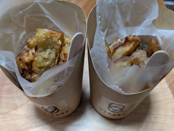他のフライドポテトも気になったのでテイクアウトすることに。 とうやという種類のじゃがいもを使った「ストレートカット」(450円)と数量限定の「ハッシュドポテトスティック」(500円)を注文。