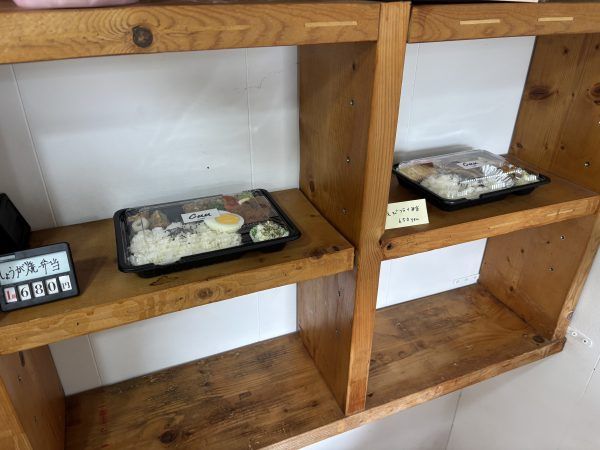 お弁当は、数種類販売されていて、インスタグラムなどで「本日のラインナップ」が紹介されています。 私が伺った日には、代わる代わるお客さんが来られて、次々とお弁当がなくなり、唐揚げ弁当と生姜焼弁当が1つずつある状態!