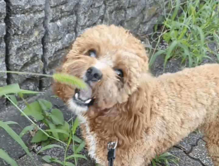 ふいに足を止めたキャバプーのふうさん。