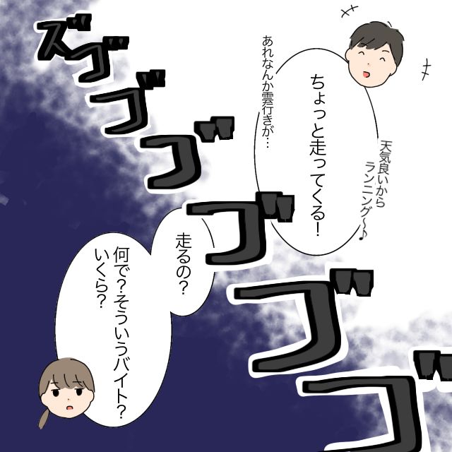 「天気良いからランニング~!ちょっと走ってくる!」たかしさんがそう答えると、「走るの?何で?そういうバイト?いくら?」かなえさんが畳みかけるように言いました。