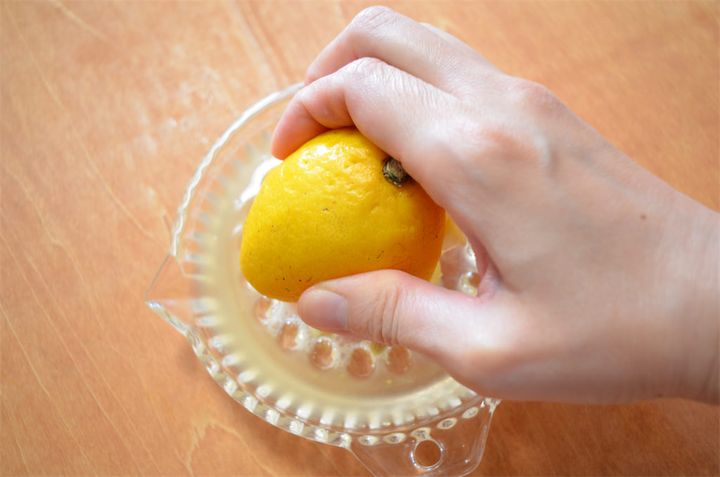 4. レモンを絞り器で絞る。