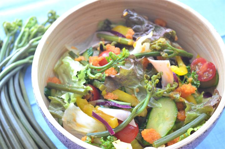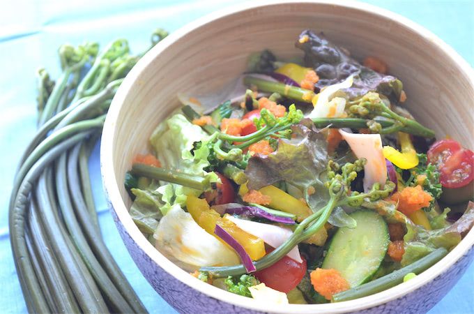 しっかりアク抜きがコツ!「わらびの生野菜サラダ」