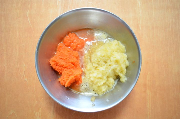 3. にんじんとりんごの皮を剥き、おろし器ですりおろす。