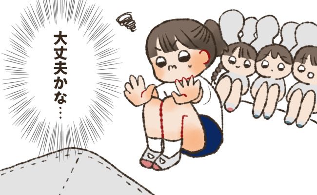 そんなある日、私は体育の授業で、みんなの前でお手本として前転や後転といったマット運動を披露することに。しかし、その日は生理2日目で、経血漏れが心配だった私は授業が終わってからすぐにトイレへ。案の定、ナプキンがズレて下着に経血が漏れており、私は青ざめたのでした。