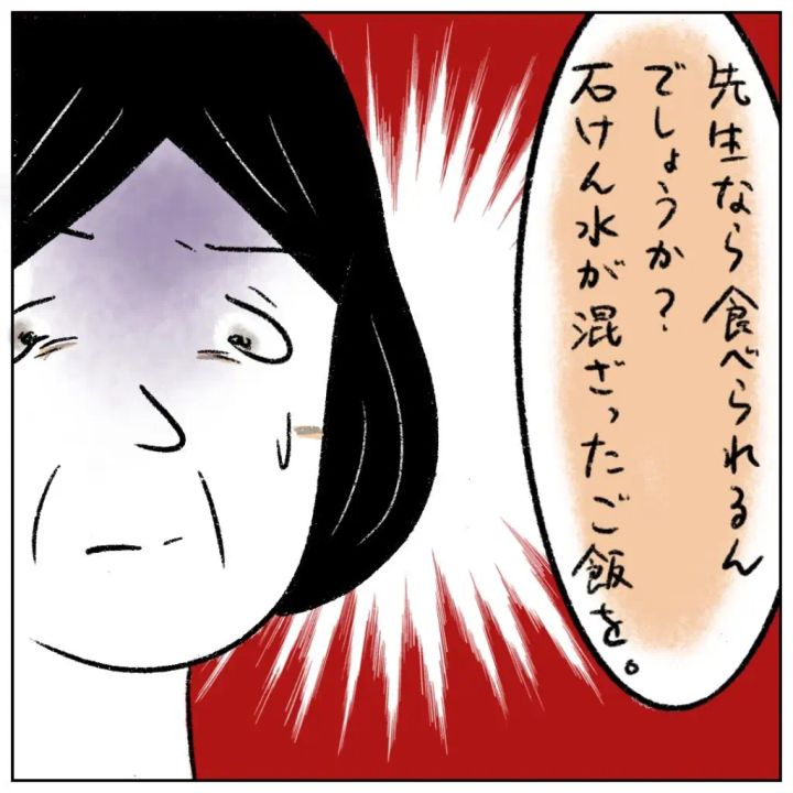 「先生なら食べられるんでしょうか?石けん水が混ざったご飯を。」
