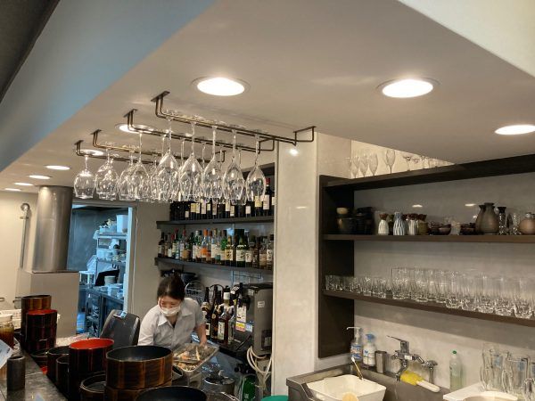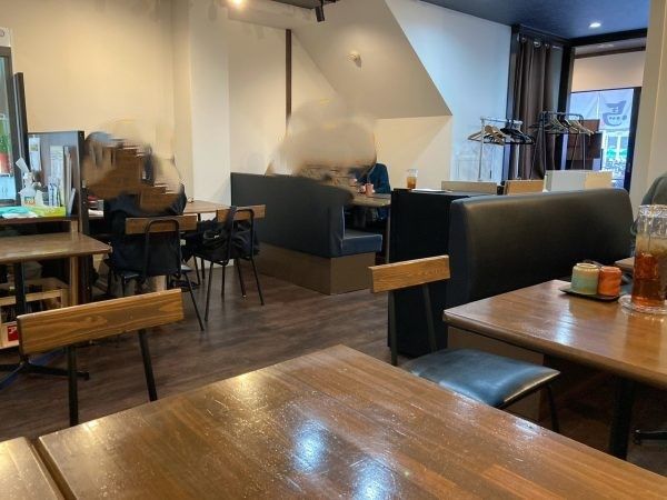 店内はソファー席の4人掛け、半ソファー席と椅子がセットになった4人掛け、椅子掛けの4人掛けのほか、個室、カウンター席があり35名ほど入れるようになってます。 ソファー席の後方には収納式の荷物入れもあって臭いがつかないような気づかいも感じられます。