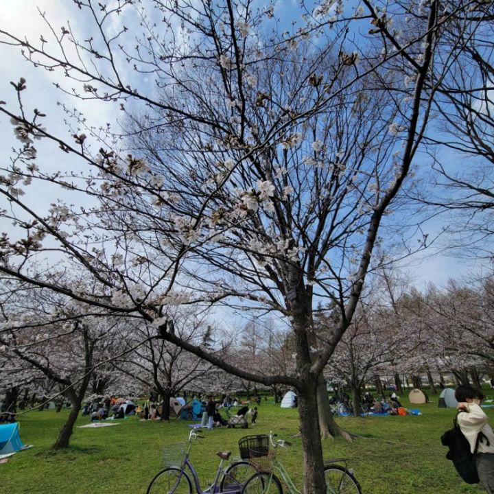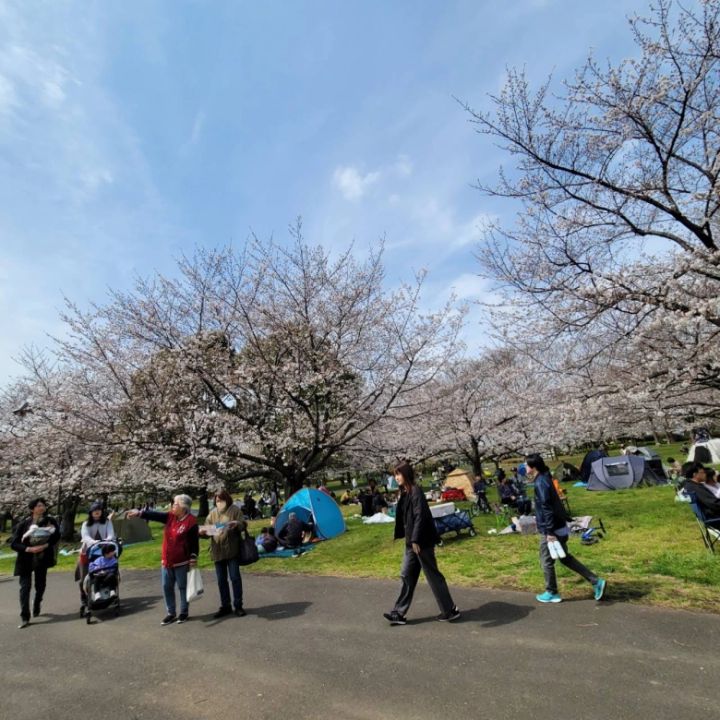 舎人公園がとても広いので、たくさんの来場客がいても、窮屈な思いをせず、ゆったりと花見を楽しめました。