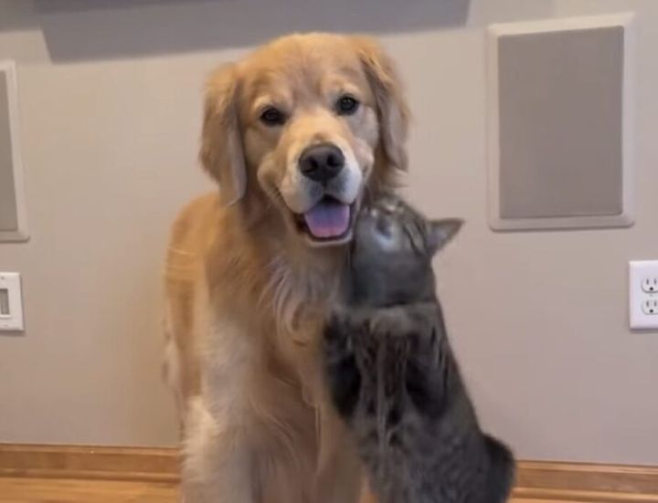 ゴールデンレトリバーさんのことが大好きな猫さん。