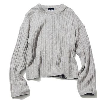グレーニット 7,990円/Gap カシミヤタッチな風合いで極上の肌ざわりを実現。似合うボトムも多い、すそリブなしの短め丈。淡いグレーでいっそうやさしく。