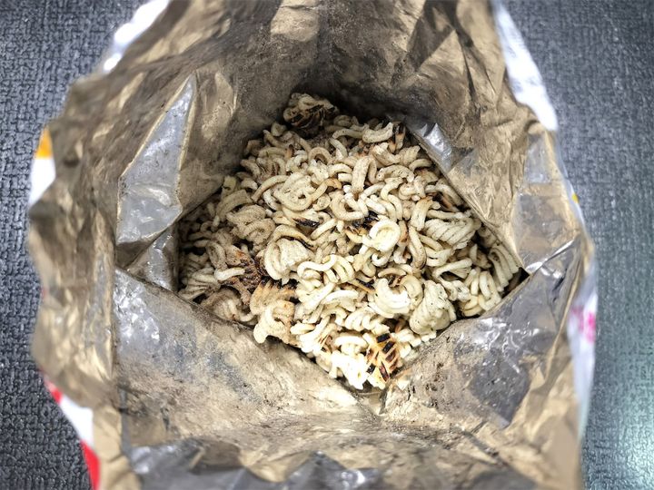 3. 冷めたら袋に戻し、手で適当に潰します。