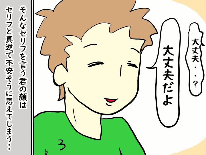 てる子さんが「大丈夫・・?」と心配そうに聞くと、「大丈夫だよ」と笑顔で答えた長男くん。でも、そんな長男くんを見て、そのセリフとは真逆で不安そうに思えてしまうてる子さん・・。