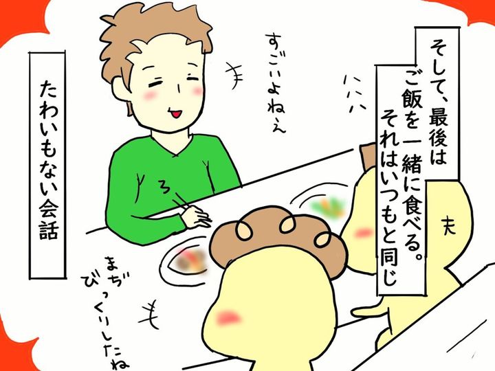 そして、最後は3人でいつもと同じようにたわいもない会話をしながらご飯を一緒に食べました。