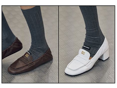 「私のスタイリングに欠かせないのがグレーのソックス。どんな色のシューズともなじんで抜け感を出せます。ミュウミュウのレトロな足元を見て、そのよさを再認識」(塚田さん)