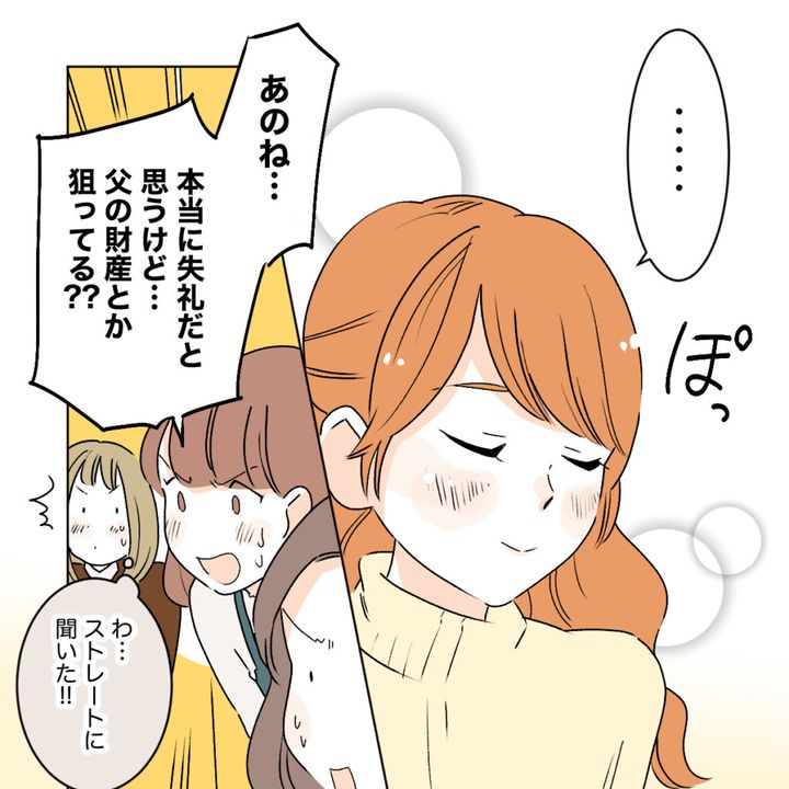 「・・・」何も答えないものの、頬を赤らめるカズハさんを見て、「あのね・・本当に失礼だと思うけど・・父の財産とか狙ってる??」と単刀直入にたずねる2人を見て、「わ・・ストレートに聞いた!!」と前のめりになるナツさん。
