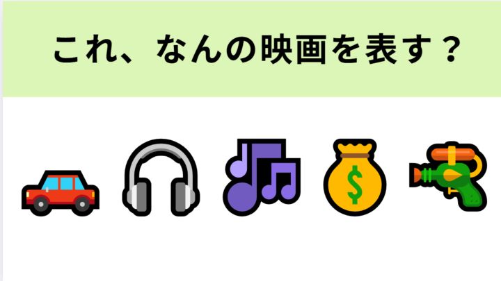 「車・ヘッドフォン・音楽・お金・ピストル」の絵文字から、若き天才ドライバーが逃がし屋として街を暴走するアメリカのアクション映画「ベイビー・ドライバー」であることがわかります。