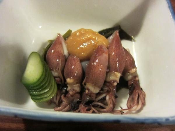 季節のホタルイカは大きくて、ぷっくりしていて、旨味いっぱいでした。生わかめの食感がよくて、酢みそも、美味しい味付けでした。
