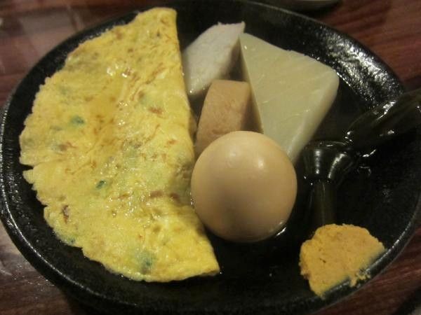 おでんの具では、珍しい、ニラ玉・たまご・昆布・大根・こんにゃく・里芋。香りよくて、旨みいっぱいなお出汁がしみしみになっていて、全部美味しかった~。全種類食べたいので、また来ようっと。