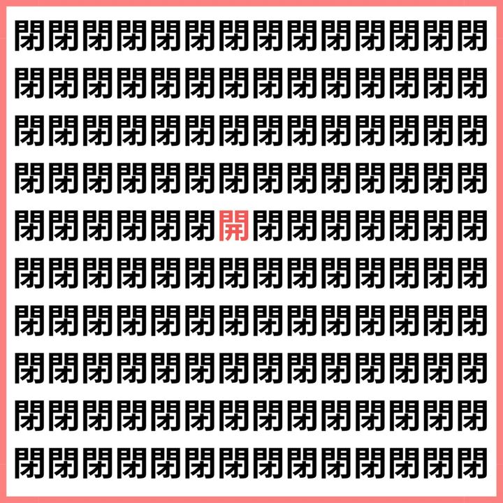 たくさんの「閉」の中に、1文字だけ違う漢字が混ざっています。
