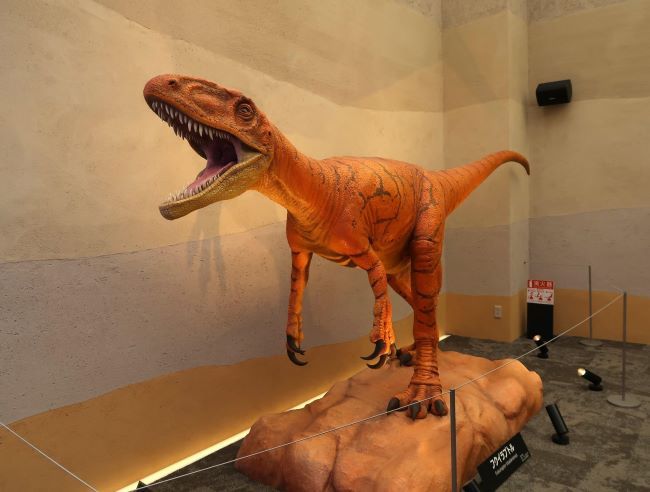 ブースの入り口ではいきなり恐竜がお出迎え。まさに恐竜王国・福井らしい演出で楽しませてくれます。当日は時間が合わなくて残念ながら体験できなかったのですが、目玉は大迫力の恐竜映像が楽しめるVR体験空間。襲いかかる恐竜やその足音など、臨場感たっぷりの没入体験ができます。懐中電灯型デバイスを使った探索展示も探検隊気分で楽しめますよ。