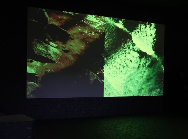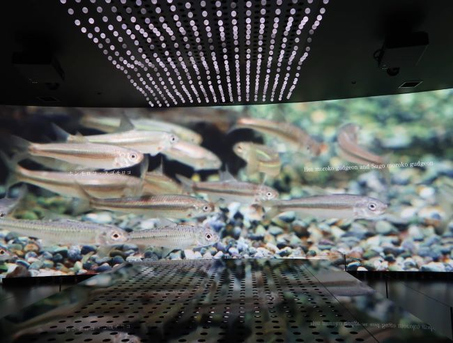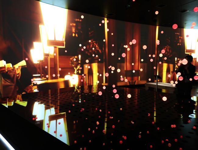 自然豊かな滋賀の四季折々の風景と、周辺で生きる人々のいとなみ、そして時間、天候等によってさまざまな姿を見せるびわ湖の美しさを、映像と連動する光のアートで体験できます。幻想的な映像と音楽はトリップ感満載。かなり癒やされました。