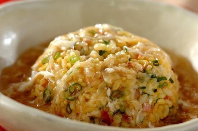 ごはんに卵黄を混ぜてフライパンで炒めることで、パラパラな仕上がりに。卵白はとっておき、あんかけに使いましょう。卵黄と卵白を別々に活用するアイデアレシピです。