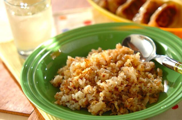 梅干しとかつおぶしがアクセントになった和風チャーハンに、カルシウムが豊富なちりめんじゃこをプラス。バターで炒めたごはんが香ばしい、爽やかな味わいの一皿です。