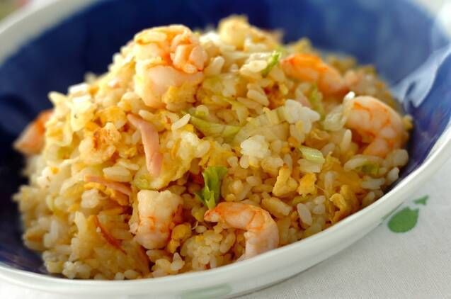 プリップリのエビを堪能できる定番のチャーハンは、肉とは一味違った海鮮の旨味たっぷり。冷凍のエビを使うと、さらなる時短が可能に。