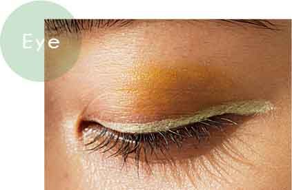 イエローニュアンスのライムグリーンで目元にアクセントを。ほどよくくすみ感のあるマットタイプで、サラッとなじませやすい。
