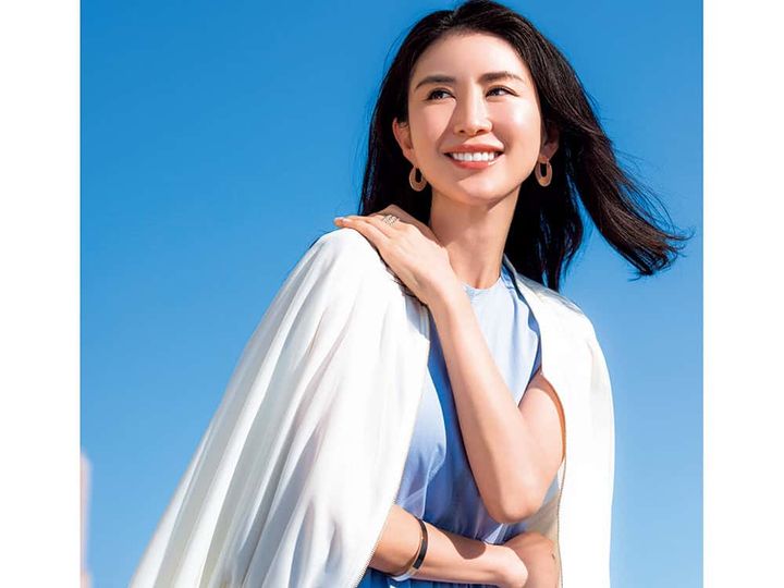 <TOP写真>ワンピース¥22,000(ファナカ/ティースクエア プレスルーム)ブルゾン¥19,800(アルページュストーリー)ピアス¥19,800バングル¥24,200右リング¥9,900〈すべてワンエーアールバイウノアエレ〉リング¥11,000〈ウノアエレシルバーコレクション〉(ともにウノアエレ ジャパン)<「美白」+α習慣>ニット¥33,000(ソブ/フィルム)