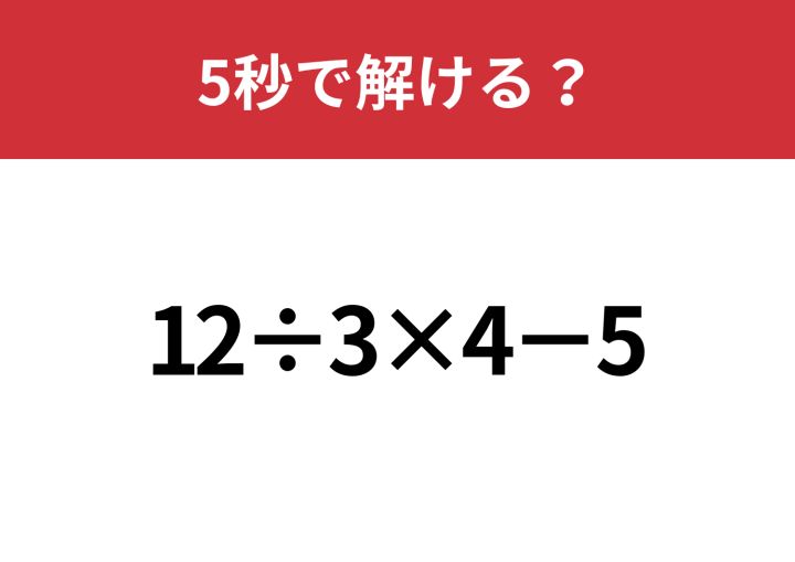 大人なら正解できますよね?「12÷3×4−5」5秒で解ける?