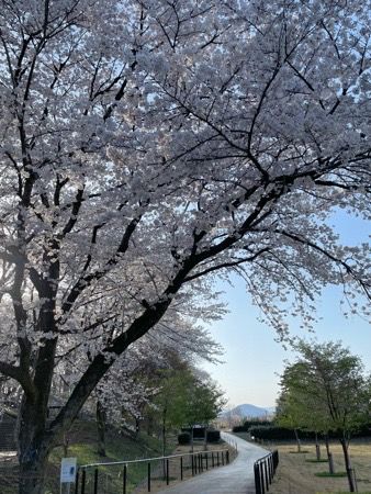 駐車場から公園に向かって行く小道。 桜が満開でした。
