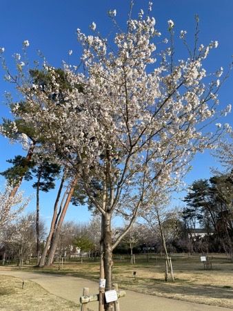 こちらには桜の見本園があります。 早咲き~遅咲きまで品種が揃っており、長い期間楽しめる構成になっています。 まだ若い木が多いのかなという印象ですが、年数が経って木が充実してくると、より見ごたえが ありそうです。