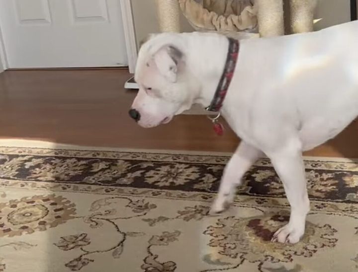 3. 「なんだこれ?」 部屋に差し込んだ光が気になった犬さん、可愛いゲームを開始!