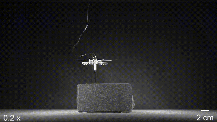 このロボットはなんと、全長およそ5センチですが、ジャンプと羽ばたきの組み合わせにより全長の4倍も跳び、効率的に移動できるのです。